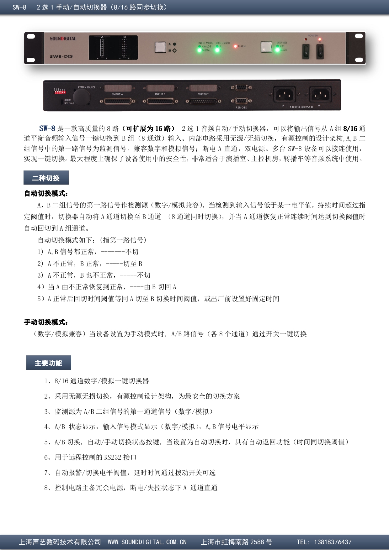 SW-8 2 选 1 手动/自动切换器(8/16 路同步切换)